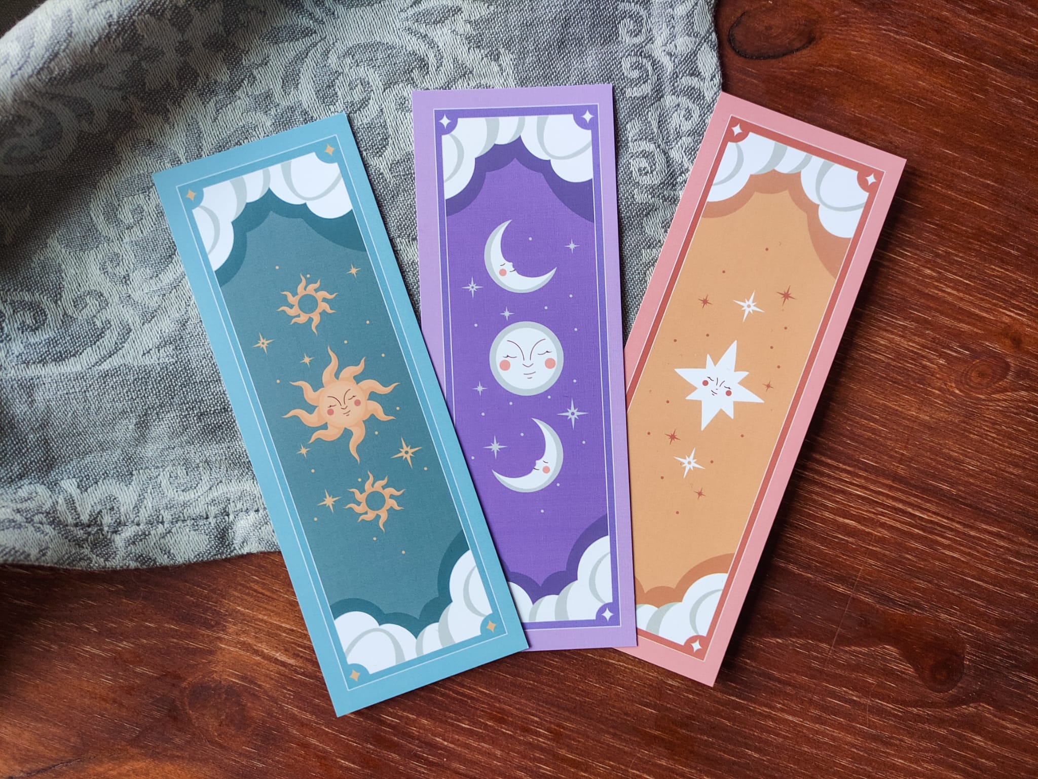 Sun, Moon and Stars Bookmarks, Cute design in a Set of 3, Bookish Gift for Readers, Bundle Discount