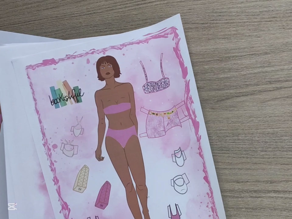 Fashion Paper Doll, Pink Parisian Chic 90s Vintage Style, Doll with 10 Complete outfits, Cut Out Printable Doll, Papercrafts for all ages