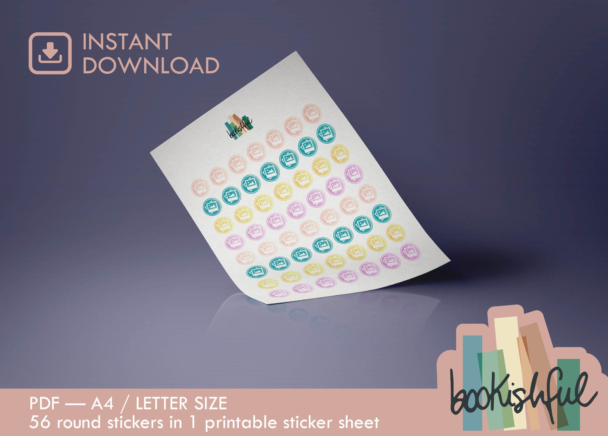 Printable Icon Stickers – Photos / Pictures / Gallery – Pastel Round Planner Stickers PDF – 56 Dots per Sheet – Instant Download PDF