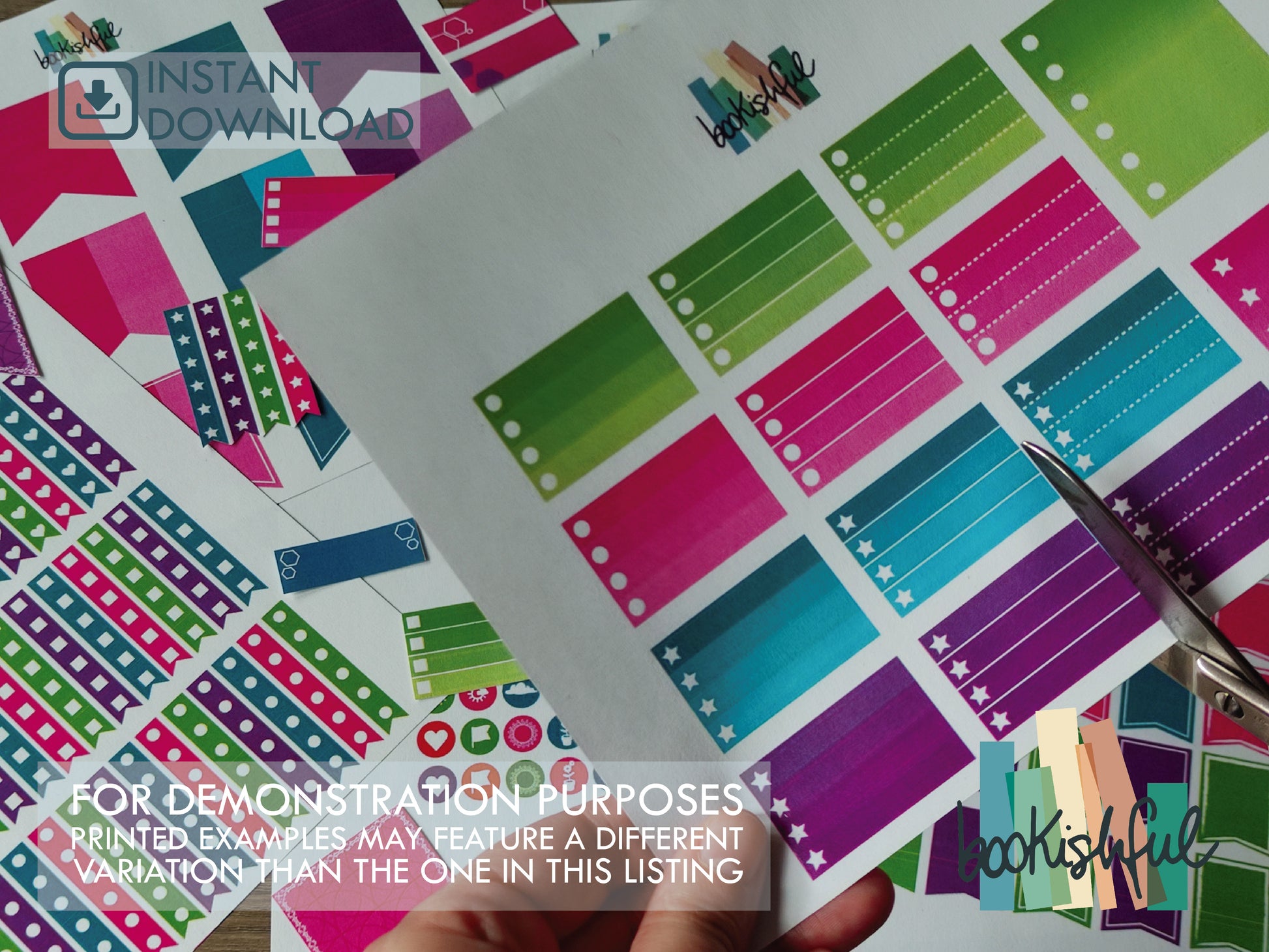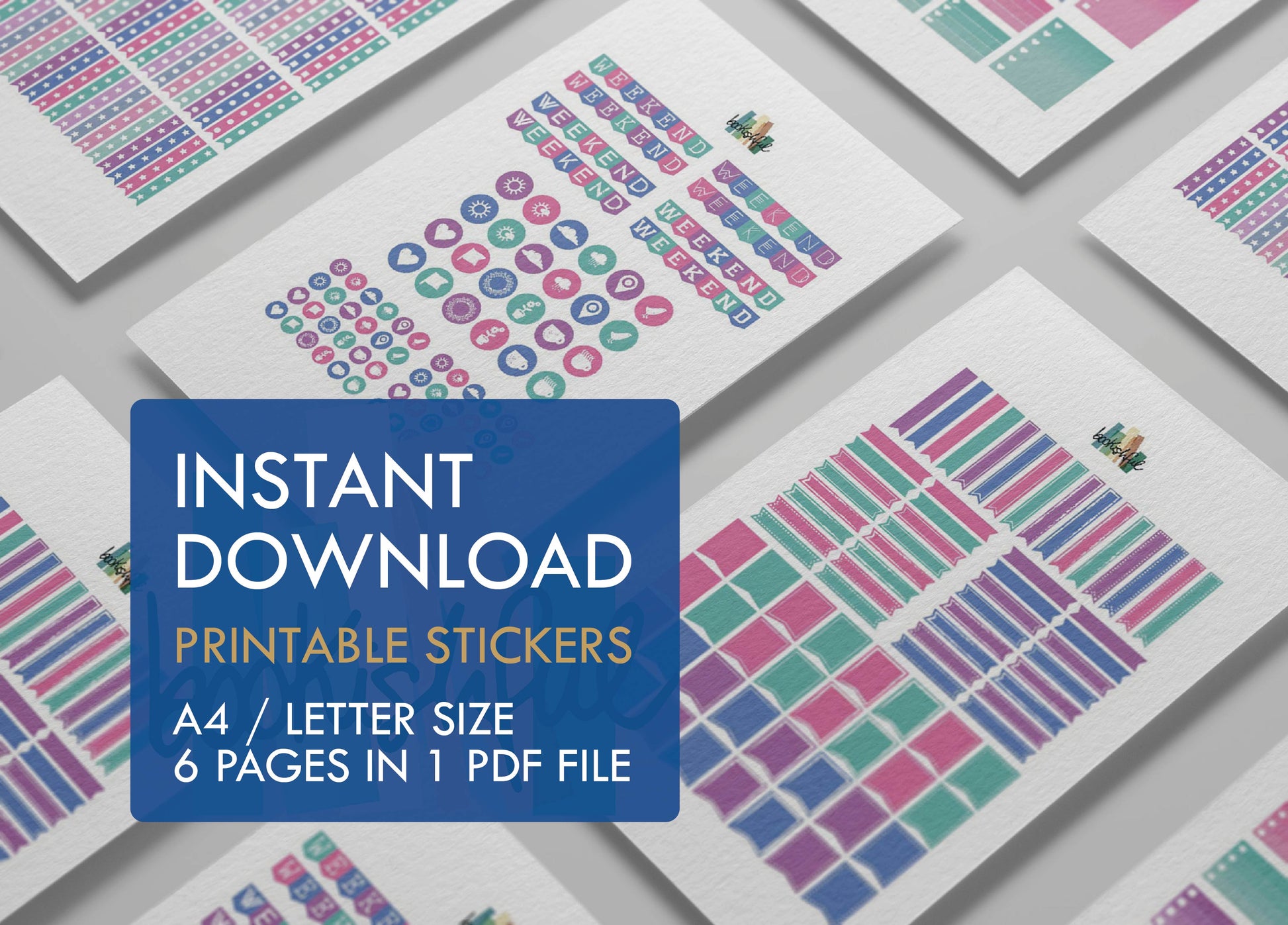 Printable Planner Sticker Kit – 300+ Pastel Colors Stickers for Journaling, Planners & Scrapbooking – 6 Pages PDF Instant Download