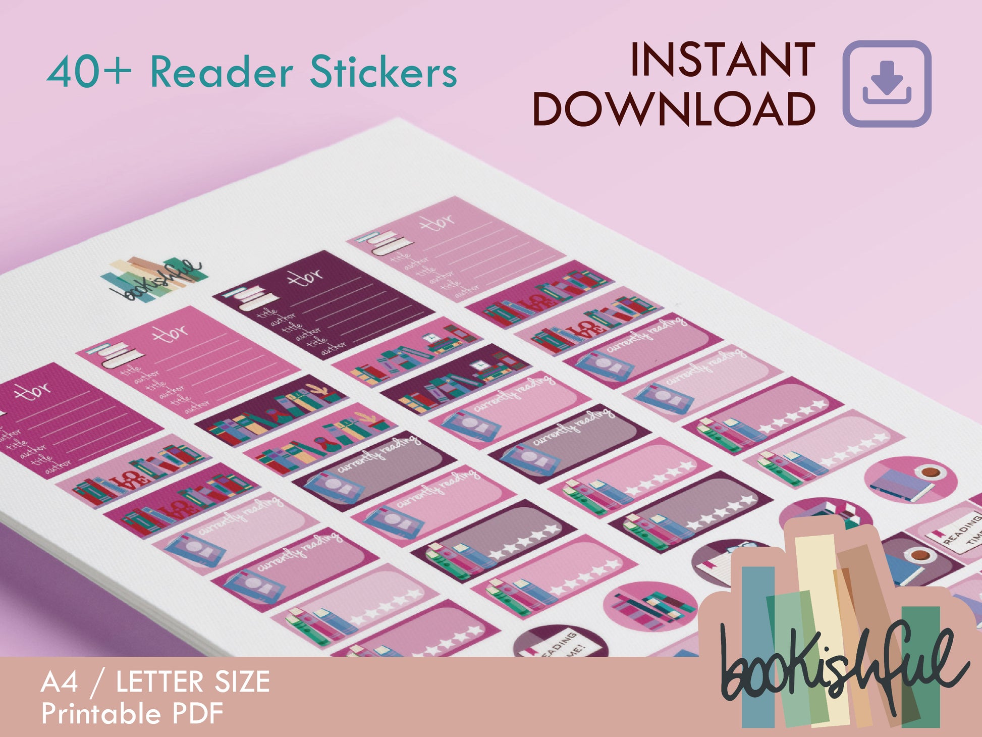 Plan your reading life in style with this 8-page printable sticker bundle with a DISCOUNT! Each page in this colorful set includes 52 high-resolution stickers designed for journaling, planning, and documenting your reading journey.
