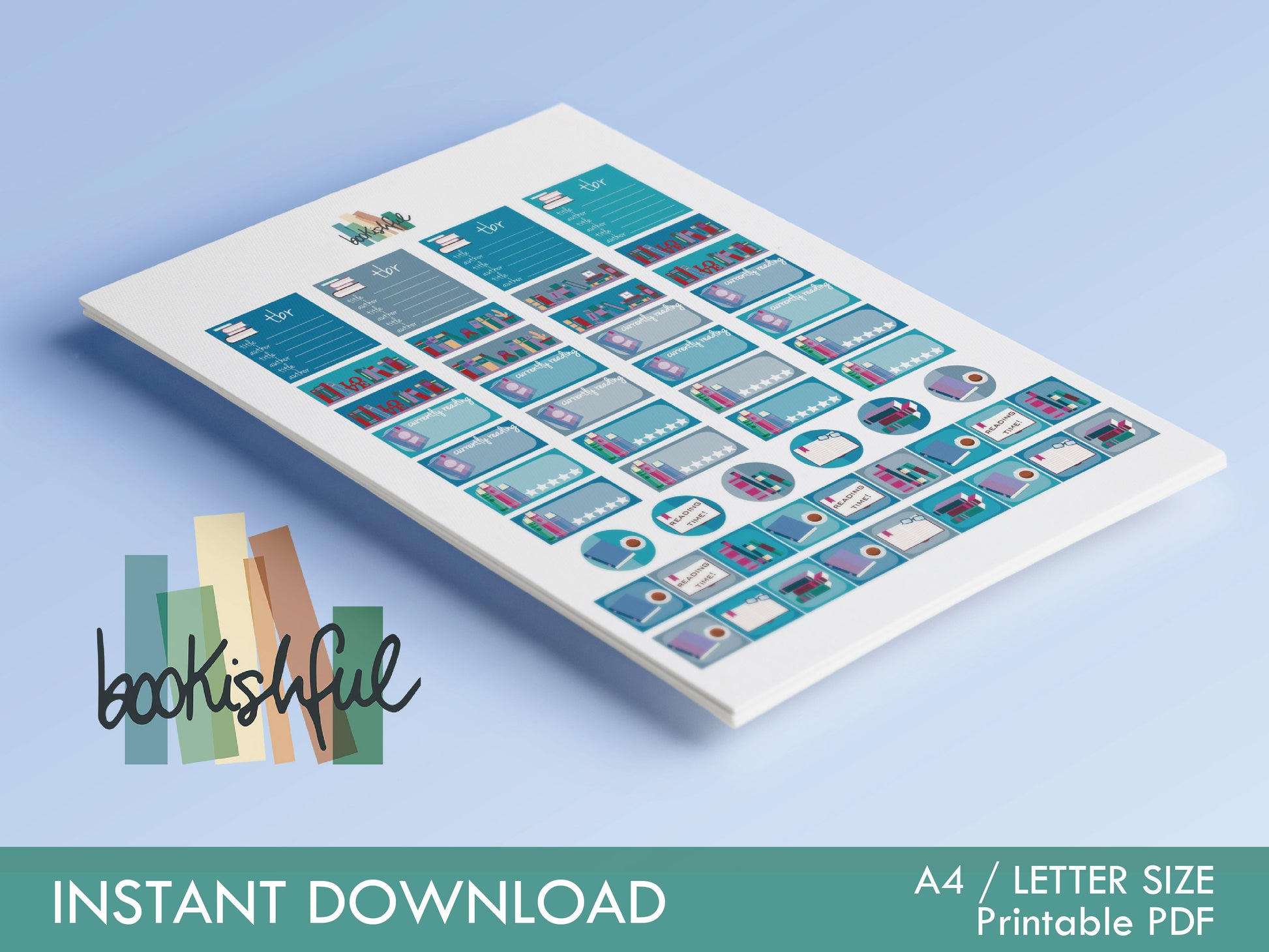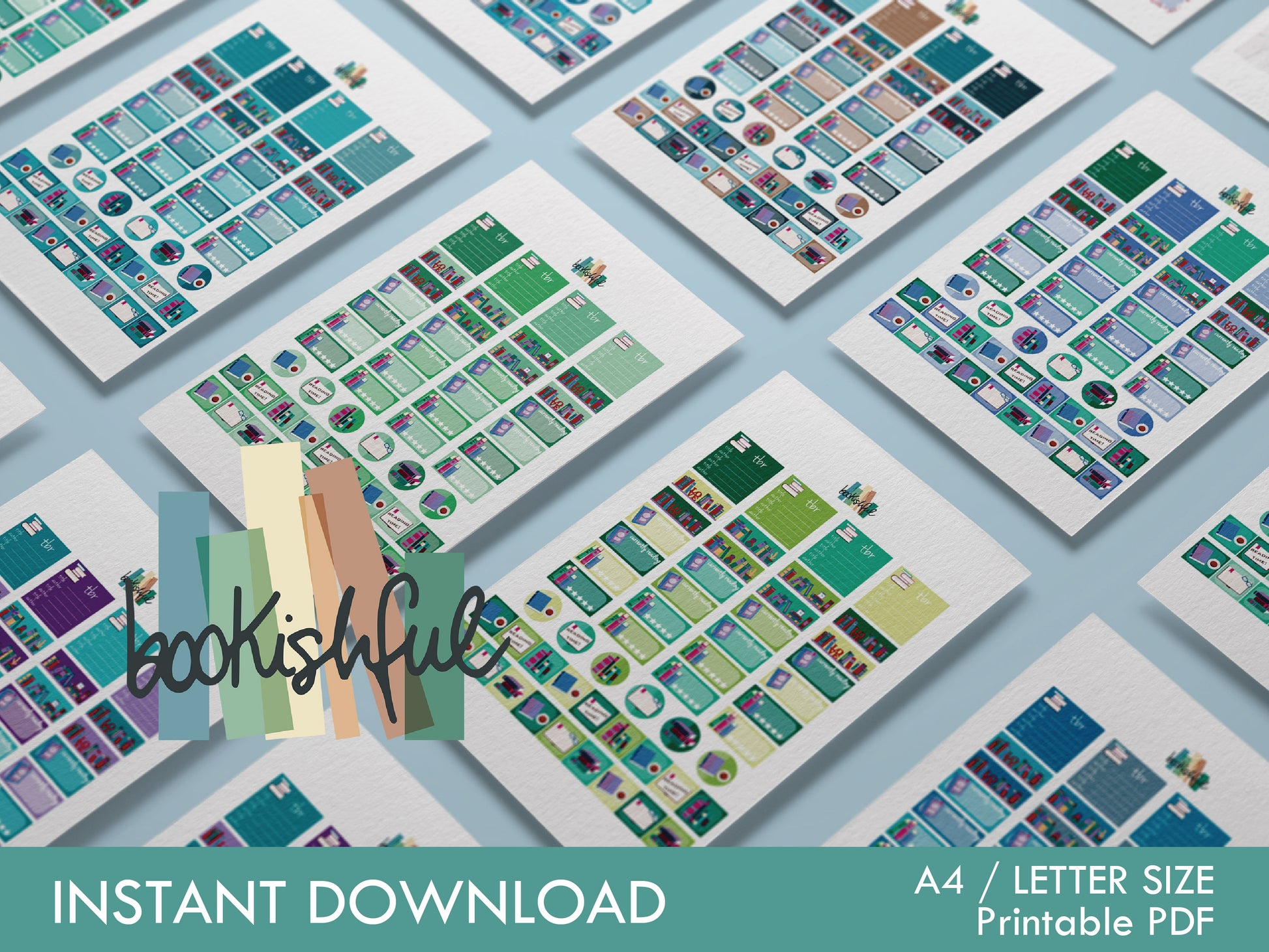 Plan your reading life in style with this 9-page printable sticker bundle with a DISCOUNT! Each page in this colorful set includes 52 high-resolution stickers designed for journaling, planning, and documenting your reading journey.