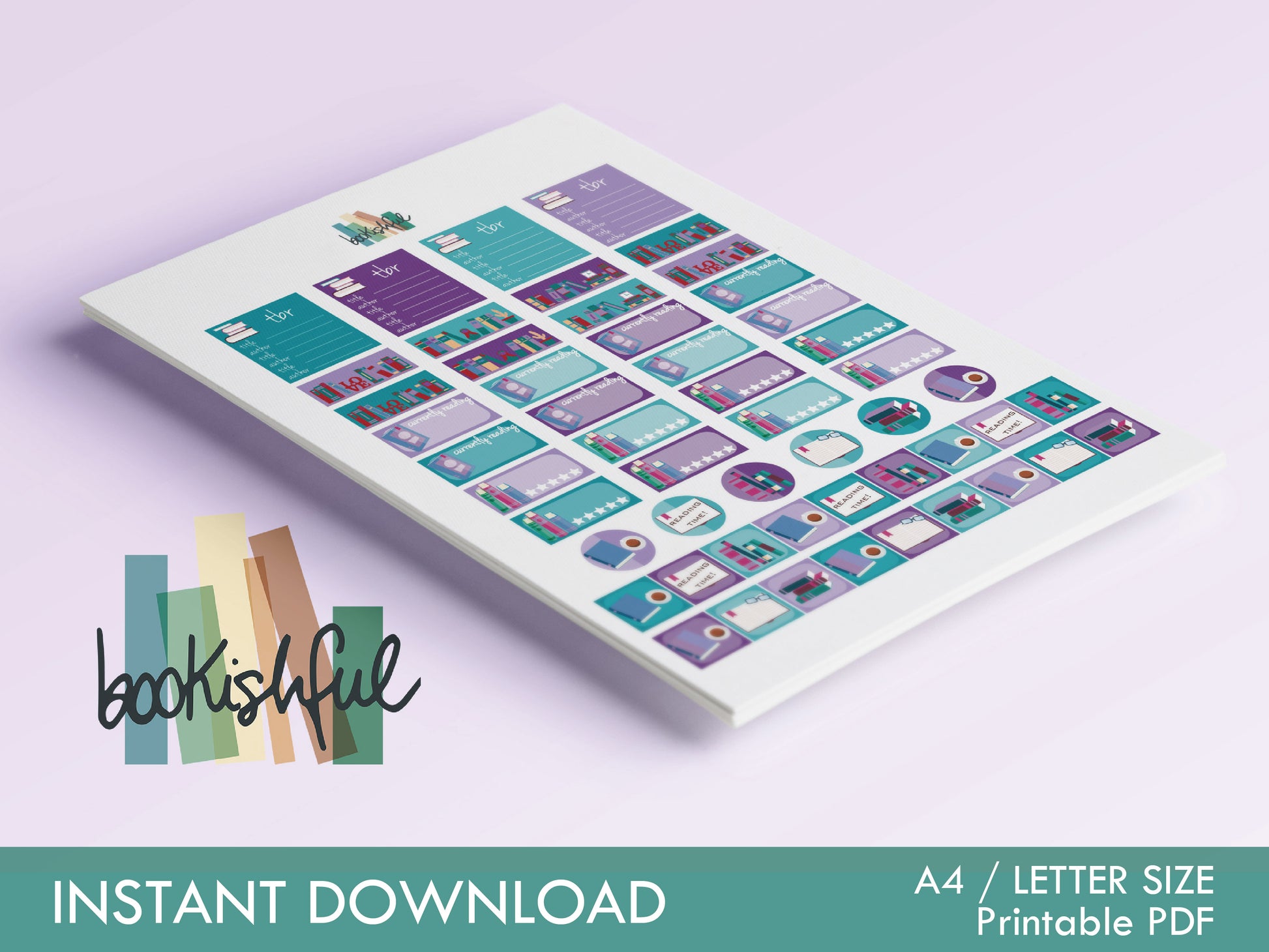 The Reader Sticker Sheet – Purple and Teal – Printable Bookish Stickers for Journals & Planners – TBR, Ratings and More! – Instant Download PDF
