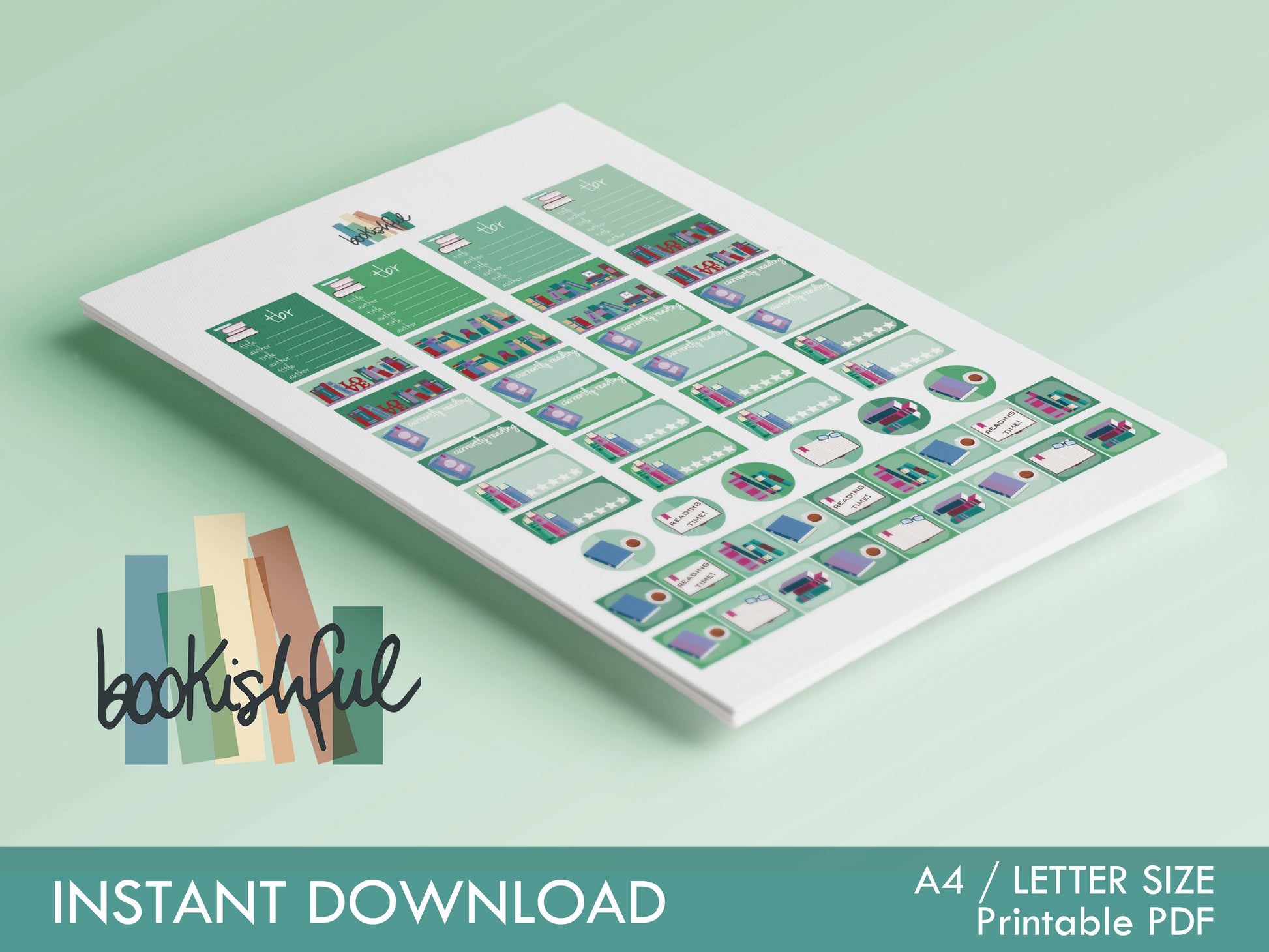 The Reader Sticker Sheet – Shades of Green – Printable Bookish Stickers for Journals & Planners – TBR, Ratings and More Instant Download PDF
